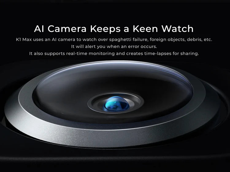 K1 Max comes equipped with AI laser radar and a built-in camera, providing advanced features and functionalities.